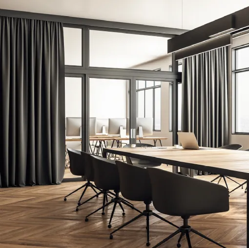 Modern complements and fabric curtains: find out more about the Notturni model by Acro Texture and enhance your spaces.