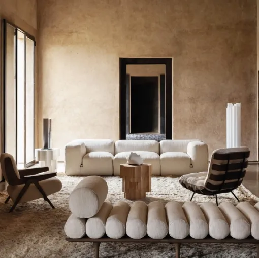 Design complements and fabric poufs: discover more about the Additional System Ottoman model by Tacchini and you can complete your spaces.