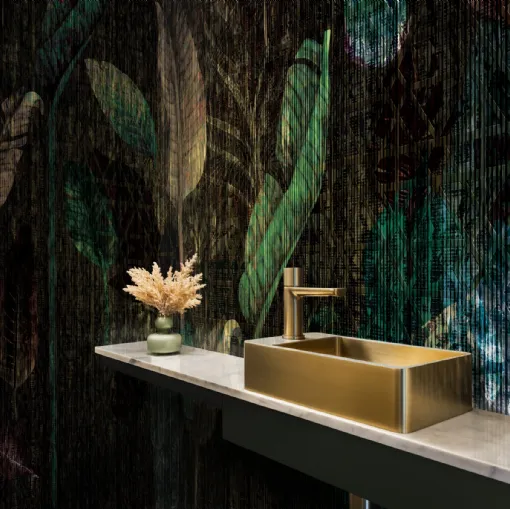 The wallpaper is the perfect purchase to enhance your interiors! Achieve a modern atmosphere with the Vanità Bloom Zigano model by Inkiostro Bianco.