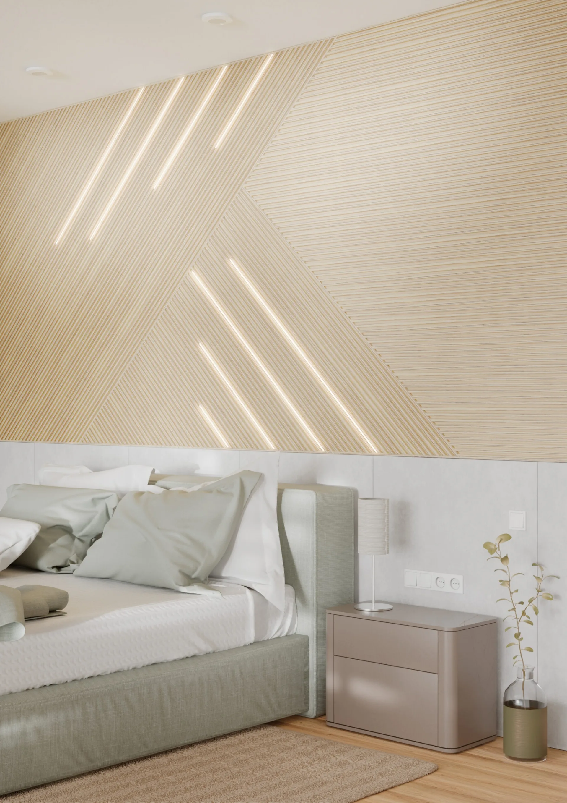 The model shown in the photo is the Boiserie Nova Moove by Déco, one of the most exclusive customizable systems of the well-known and renowned Home Accessories brand. Discover our series of wooden and lacquered Boiseries and find out how to complete the furnishing concept you have alw