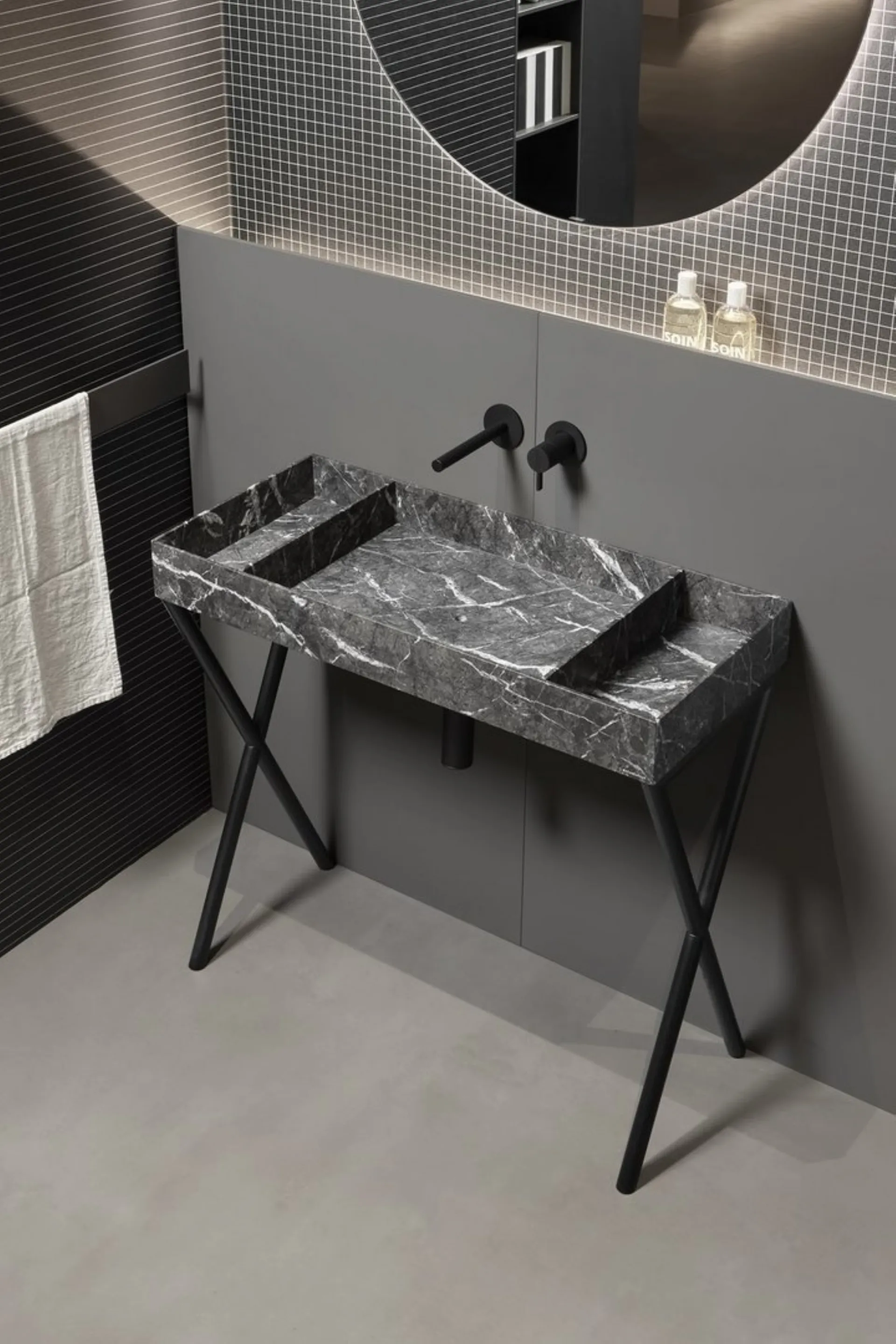 Every component of modern Bathroom Furniture with floor standing bathroom furniture from the brand serves to make the destination room an interior to be enjoyed. A virtually infinite range of materials and designer colors characterize the furniture of the well-known and renowned brand, synonymous with excellence in the field. A notable attention to detail ensures the quality that characterizes each collection of floor-standing bathroom furniture by Antoniolupi available in the store. The marble model we offer is designed to enhance the bathroom by combining great functionality and style. The Bathroom Furniture programs by the Antoniolupi brand guarantee excellent customization opportunities, excellent design, lots of functionality and ergonomics. The Nabatei Console Bathroom Cabinet model by Antoniolupi in marble is designed to perfectly equip a room that is pleasing to the eye, functional and easy to use.