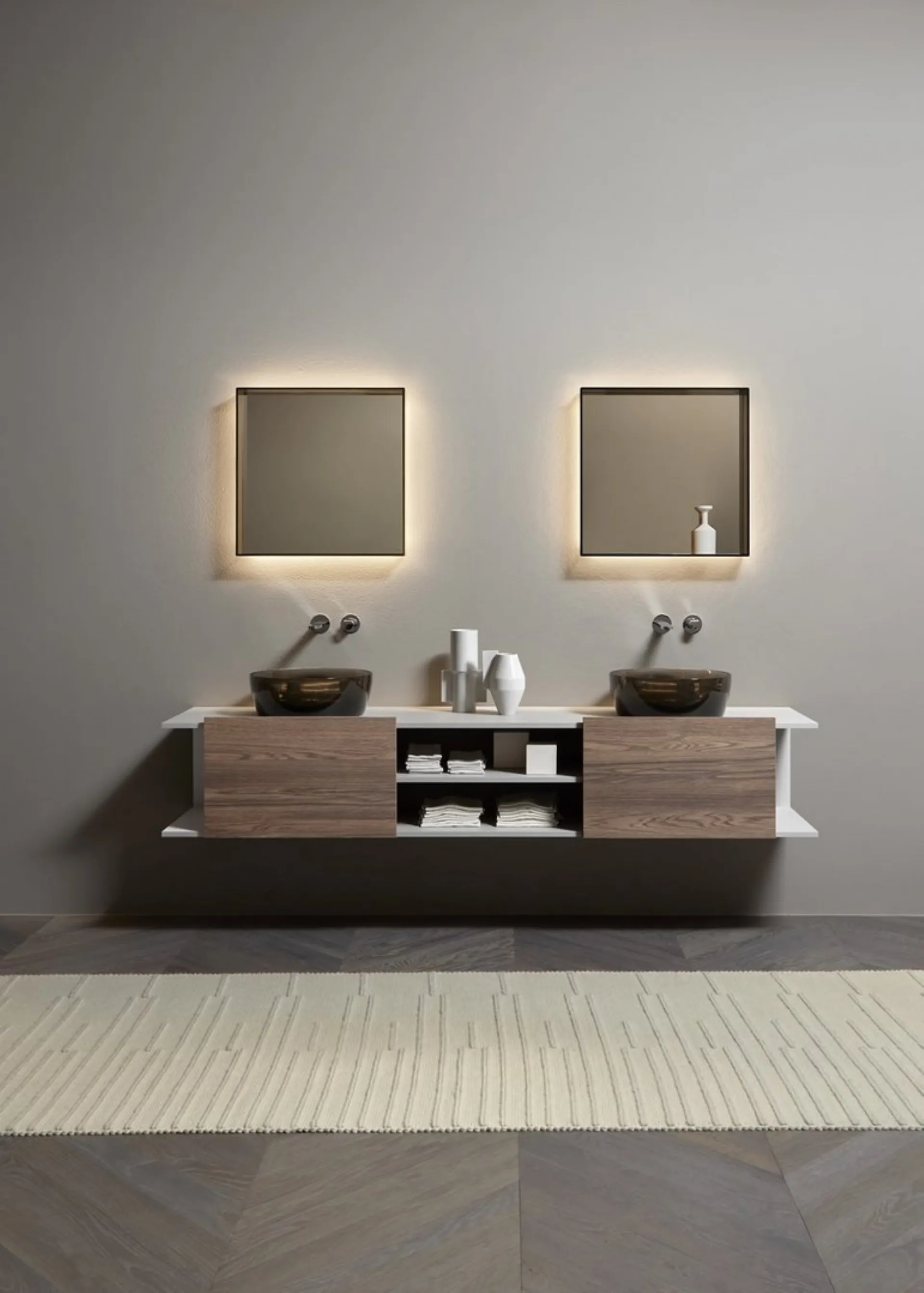 In the store, you'll be able to touch the most exclusive compositions of the renowned brand: we await you to furnish together the bathroom of your home. Innovative finishes and a wide range of colors ensure a unique design and durable materials that resist various substances. The Wall-hung Bathroom Vanity Nemesis in Oak by Antoniolupi is part of the company's extensive collection of bathroom furniture, always charming. Antoniolupi designs proposals for modern bathroom furniture with wall-hung vanities that combine unique design and practicality, as this interior requires. With the types we offer, you will guarantee yourself well-made and designed furniture even for the bathroom, which must be furnished with care, practicality, and design. Beautiful and functional in every bathroom, a modern wooden model like the one in the picture will solve your housing problems of all kinds.