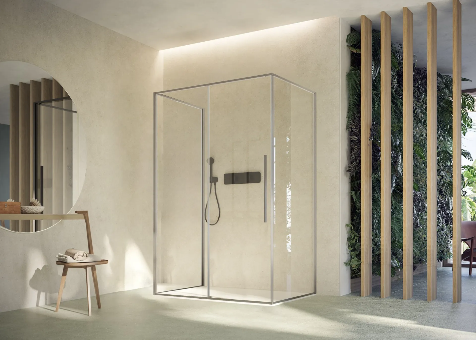 An almost infinite range of materials available and design colors characterize the furnishings of the well-known and renowned brand, synonymous with excellence in the sector. The Megius Zen Plus+ Shower Enclosure model in glass is suitable for perfectly furnishing a beautiful, functional, and easy-to-use space. Each modern Bathroom Furnishing item with a shower enclosure from the brand serves to make the destination space a living environment. A remarkable attention to detail ensures the excellence that distinguishes each collection of Megius shower enclosures available in store. The Bathroom Furnishing lines by Megius guarantee excellent opportunities for customization, refined design, functionality, and ergonomics.