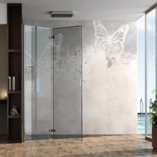 Glass shower box from the Megius brand: click and discover the modern bathroom furniture Prisma 2|0 Swing for your bathroom.