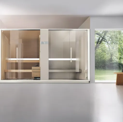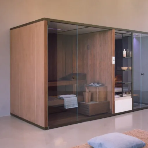 Discover more about bathroom furniture design: wooden saunas like the Logica SPA model by Effe are waiting for you.