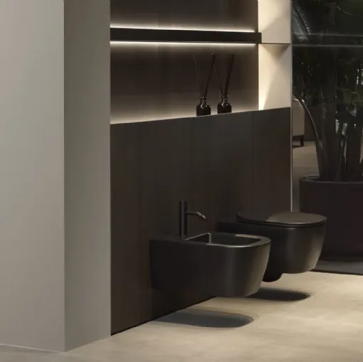 Furnish the modern wellness room perfectly with Komodo, sanitary ware, and ceramic accessories by Antoniolupi.