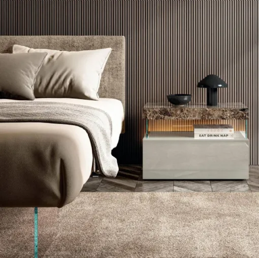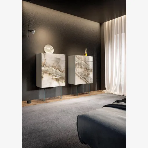 Do you want to set up the bedroom with bedside tables and drawers furniture from Lago? Here is the Air 2681 model in glass for modern spaces.