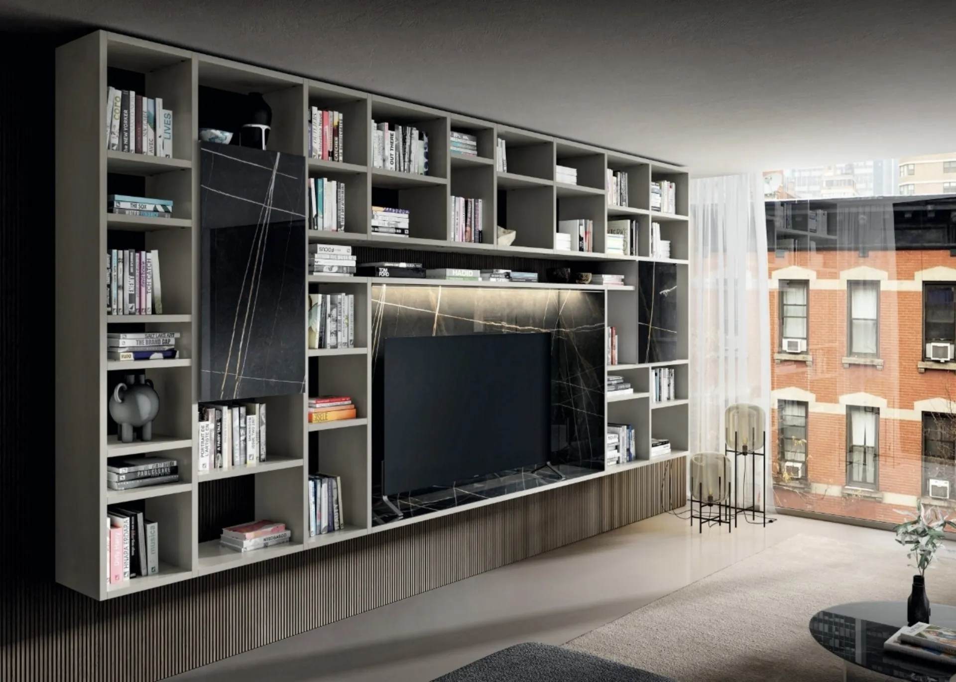You can use these furniture pieces as a multifunctional support surface, to store both daily use objects and typically decorative items. The well-known and reputed brand produces modern suspended bookcases in a wide variety of configurations, sizes, shades, and tones to ensure maximum versatility. Discover the most exclusive space-saving solutions, like the bookcase in the image in matte lacquer, and bring to life the dynamic and functional living room you have always dreamed of. Enrich your spaces with Lago furniture and accessories: in the store, you will find functional and high-quality products, always made of premium materials and with refined aesthetics.