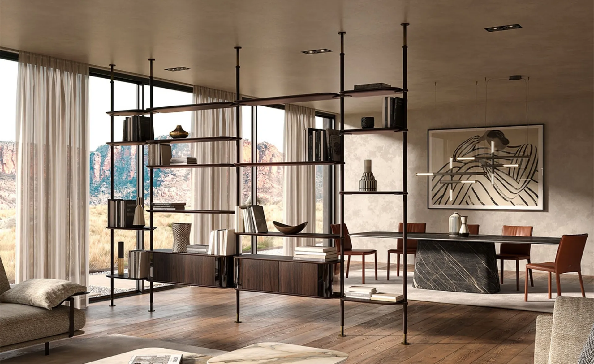 Design libraries are always so loved for organizing the living room and walls, combining practicality and design perfectly. The Harbour dividing bookcase by Cattelan Italia in the photo, in the wood variant, is truly functional and versatile, solid and durable, as well as customizable according to the most personal housing needs. Cattelan Italia dividing bookcases are available in various configurations: corner, linear, hanging, and can be customized for you with various components, shelves, and compartments.