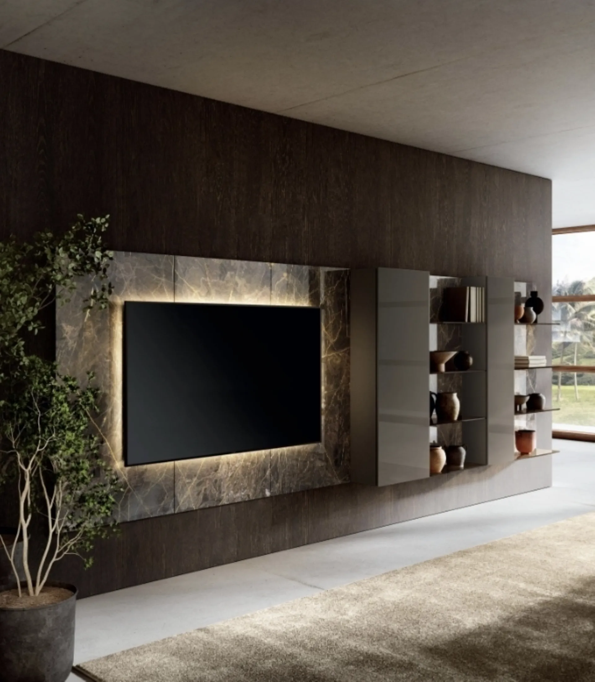 For information and quotes on the Lago 36e8 2156 Wall Unit in the photo, contact us! The proposed model is made of glass, but thanks to a wide variety of finishes, tones, and shapes, it can adapt to styles of all kinds. Wall units have taken a prominent place in the living area of our homes: they are multifunctional and space-saving furniture that can always be custom-made. This wall unit is one of the solutions offered by the company and will allow you to design the living room according to the most specific housing needs.