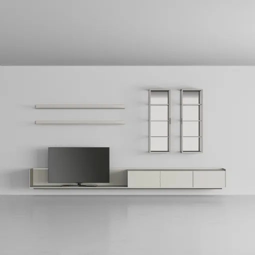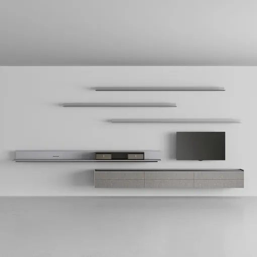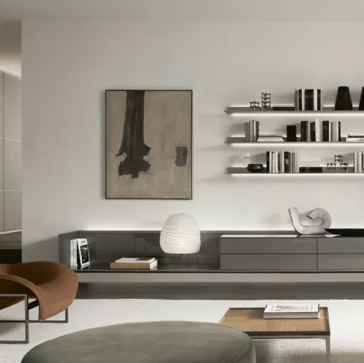 Do you want to design a practical and functional living room? Here is the Self Plan Ash Grey equipped wall by Rimadesio with modern and decisive ...