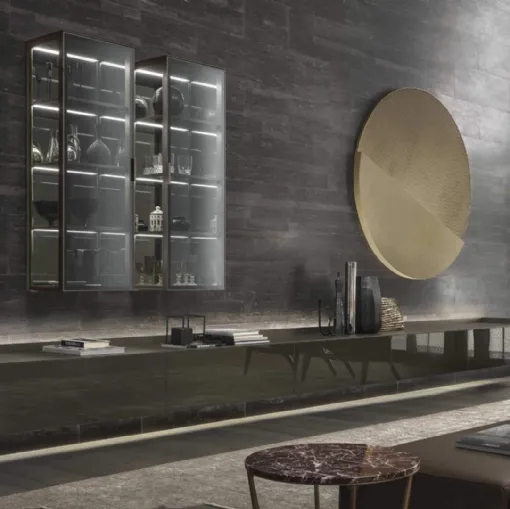 Equipped walls and hanging cabinets by Rimadesio: click and discover the Abacus Moro model and you can complete modern rooms of any type.