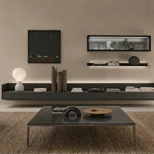 Do you want to set up a dynamic and functional living room? We offer you the Self Plan Nero Rimadesio fitted wall unit with modern, sharp lines.