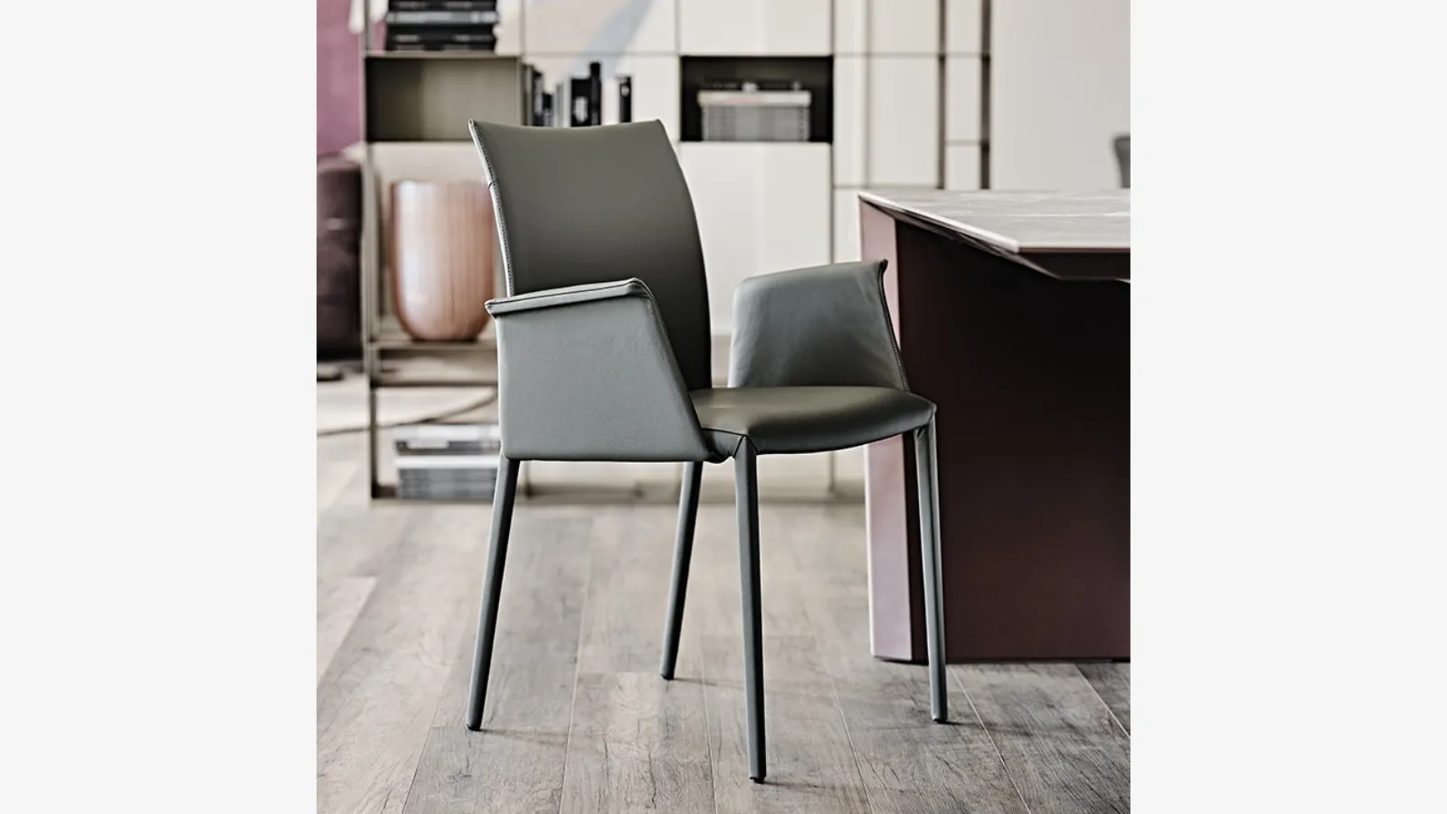 The kitchen and dining area will not be truly complete with everything you need without the right chairs, to match the rest of the furniture and the style of your home. With this comfortable, ergonomic, and aesthetically pleasing solution, you can finalize your furnishing concept and enhance the room where you chat with family and friends. Norma chair by Cattelan Italia: choose one of the most original proposals from the brand, a specialist in Home Furnishings. Browsing through our leather solutions will allow you to find the dining model you have always desired. If you want to enhance modern atmospheres, the model shown in the photo is the ideal choice for a venue of this style. A rich catalog of furniture and accessory elements awaits you in our showroom, where you can find fixed leather chairs from top brands.