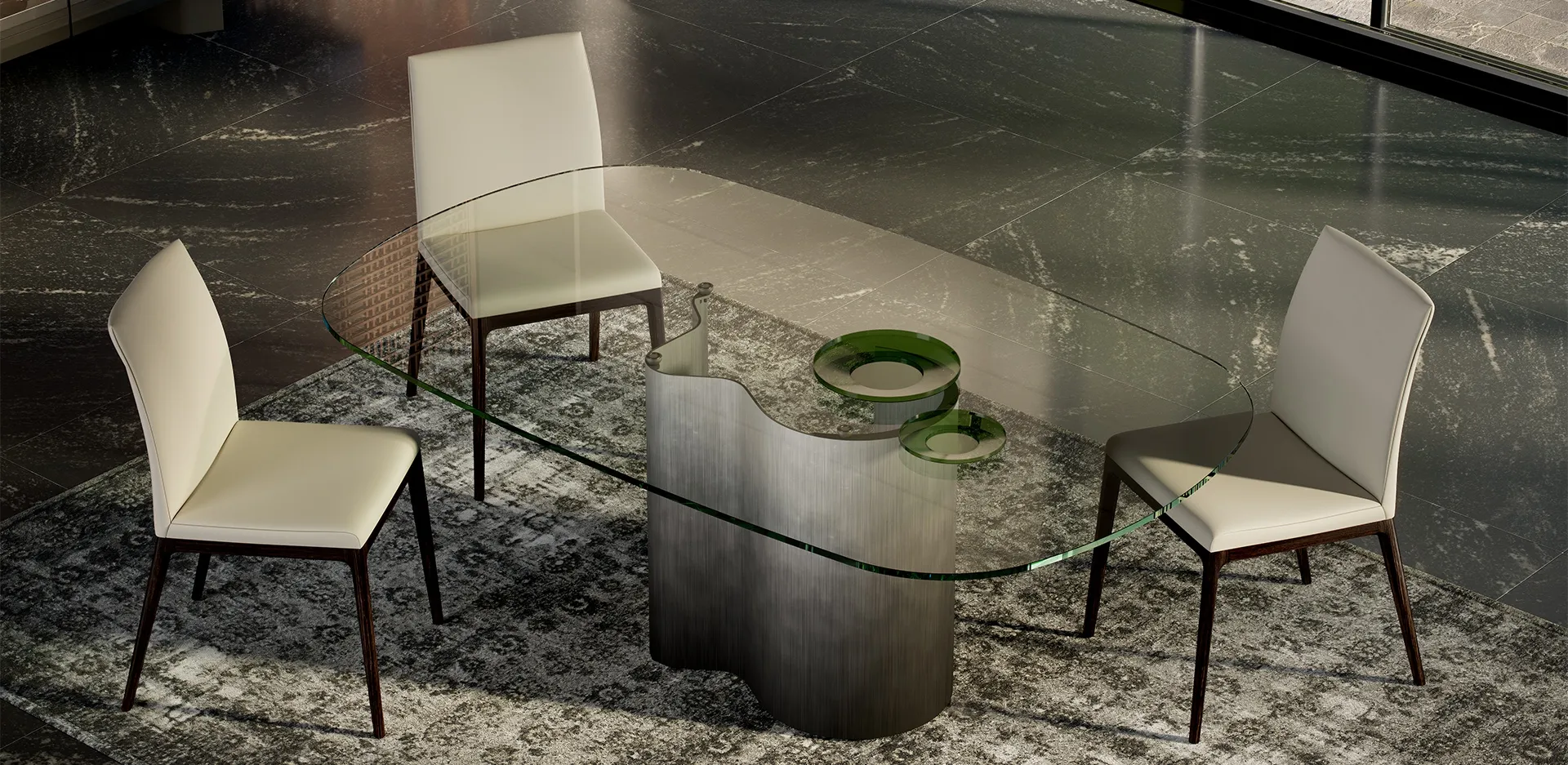 Ideal for creating unique combinations with designer seating and accessories, the Fixed Tables from the brand are among the most original solutions on the market, perfect for the living room and kitchen area. Cattelan Italia Papelito Glass Table: made with high-quality materials, it is characterized by the bold shapes of the top and an elegant and refined base. If you desire a dining table with a high aesthetic value, contact us to receive information and quotes on the model featured in the picture. The well-known brand Cattelan Italia, specializing in glass furniture production, offers a wide range of finishes, shapes, and colors for its line.