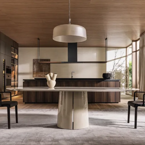 If you are looking for fixed design tables, here is the Blevio Marmo marble dining model from Molteni & C.