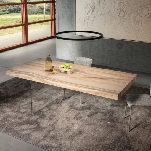 If you are looking for fixed design tables, here is the Stratum glass dining model by Lago brand for you.
