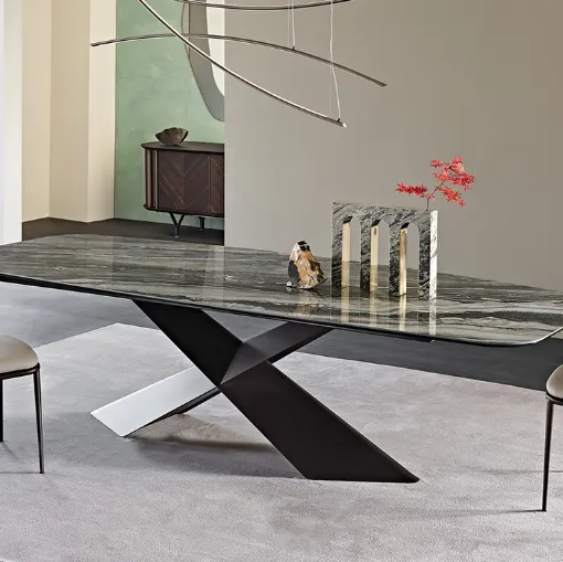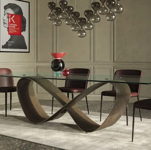 If you are looking for fixed design tables, here is the Stratos Crystalart glass dining table model from the Cattelan Italia brand for you.