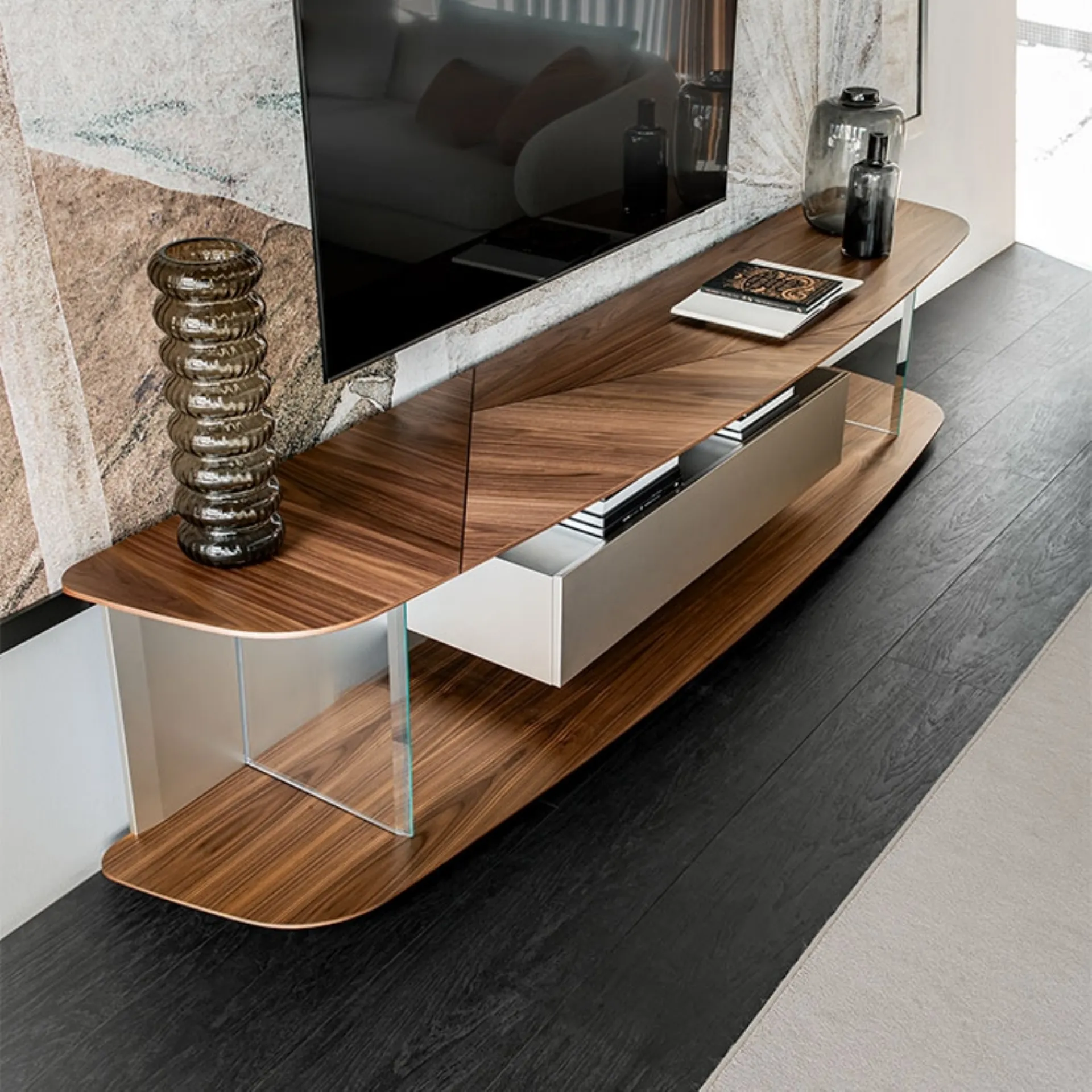 This solution with a wooden TV cabinet, among the most beautiful compositions of Cattelan Italia, is perfect for furnishing a living room of great aesthetic value. Cattelan Italia offers different versions of TV cabinet designs, which make the walls of the living area always well-organized and pleasing to the eye. The Altavista TV cabinet by Cattelan Italia in wood furnishes spaces with style and functionality, giving you the opportunity to fully enjoy and feel comfortable in them. The Altavista TV cabinet by Cattelan Italia is suitable for placement in different types of living rooms, thanks to its clean design and great functionality.