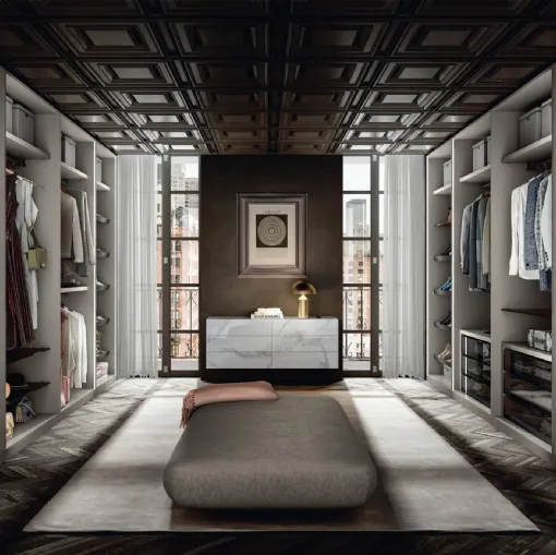 Here is the Cabina Armadio Outfit 1182 wardrobe in matte lacquer by Lago! A wide range of walk-in wardrobes with sliding doors.