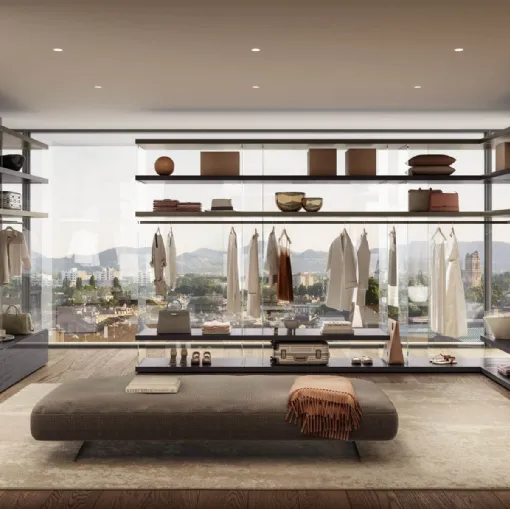 If you are looking for wardrobe closets with sliding doors, click and discover the Lago Cabina Armadio Vista 1185 wardrobe in glass.