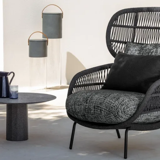 A rich catalogue of fabric garden poufs awaits you at our store: click and discover the Panama Armchair model by Talenti.