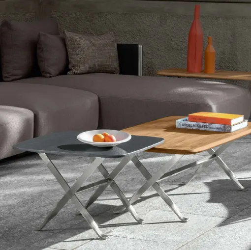 A rich catalog of sandstone garden tables awaits you in our showroom: click and discover the Cruise Teak coffee table model by Talenti.