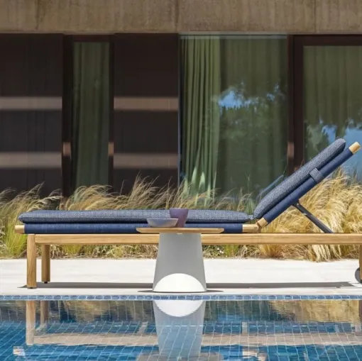 Furnish the outdoor space with Talenti Garden Furniture! Sets and recliners in fabric, like the Moon Teak Sunbed model, are waiting for you!