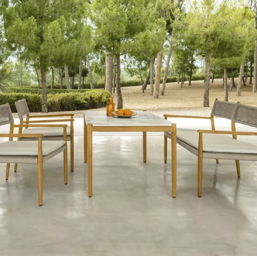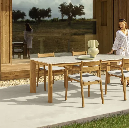 A rich catalog of wooden garden tables awaits you in store: click and discover the Dolcevita Table and Chairs model by Talenti.