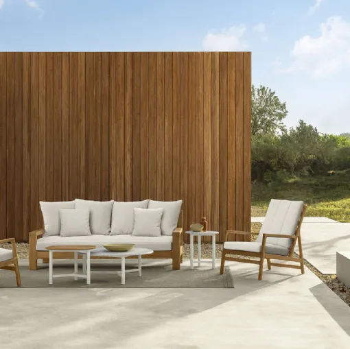 A wide range of wooden garden sofas is waiting for you in our showroom: click and discover the Oliver Outdoor Furniture model by Talenti.