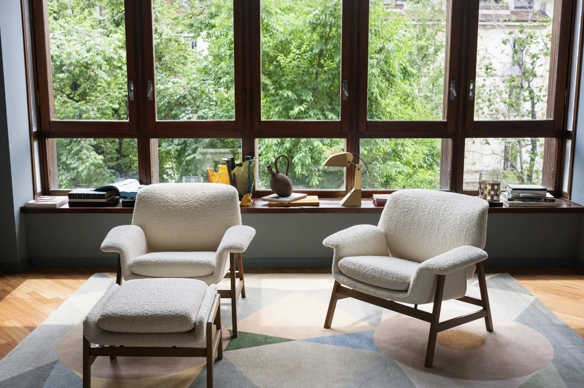 The high aesthetic value furnishing compositions of the Tacchini brand decorate interiors with their colors and style, recreating unique home atmospheres. Very versatile and multifunctional, modern fabric accessories perform various functions: they enhance the practical and aesthetic value of the space. In our showroom you can experience the quality of the modern fabric carpet models by the brand, just like this one in the photo. Accessories and carpets complete the home decor, occupying the space in a useful way and making it welcoming and beautiful to look at. Tacchini's Ritual fabric carpet: it will add personality and charm to an interior furnished with furniture and accessories with modern influences.
