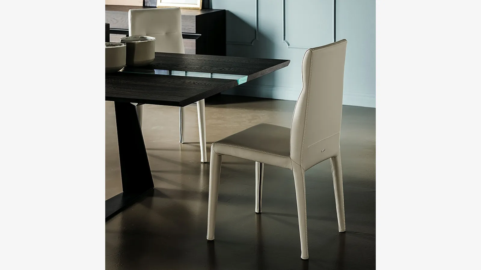 If you want an eco-leather chair to enhance the atmosphere of your home, get information on the model in the photograph and find a coordinated table. A wide variety of fixed dining seats are waiting for you in the store: contact us for information and quotes and enhance your interiors with the quality that only Cattelan Italia can guarantee for furniture and accessories. In the living room or kitchen, chairs are essential pieces of furniture: they enhance the style of the room and serve a crucial function. The living room and kitchen are not truly pleasant and comfortable if furnished with the wrong chairs, which is why they must be matched to the rest of the furniture and the room's dimensions. The Cattelan Italia Agatha Flex Chair: this model will enhance spaces of all kinds, especially modern settings.